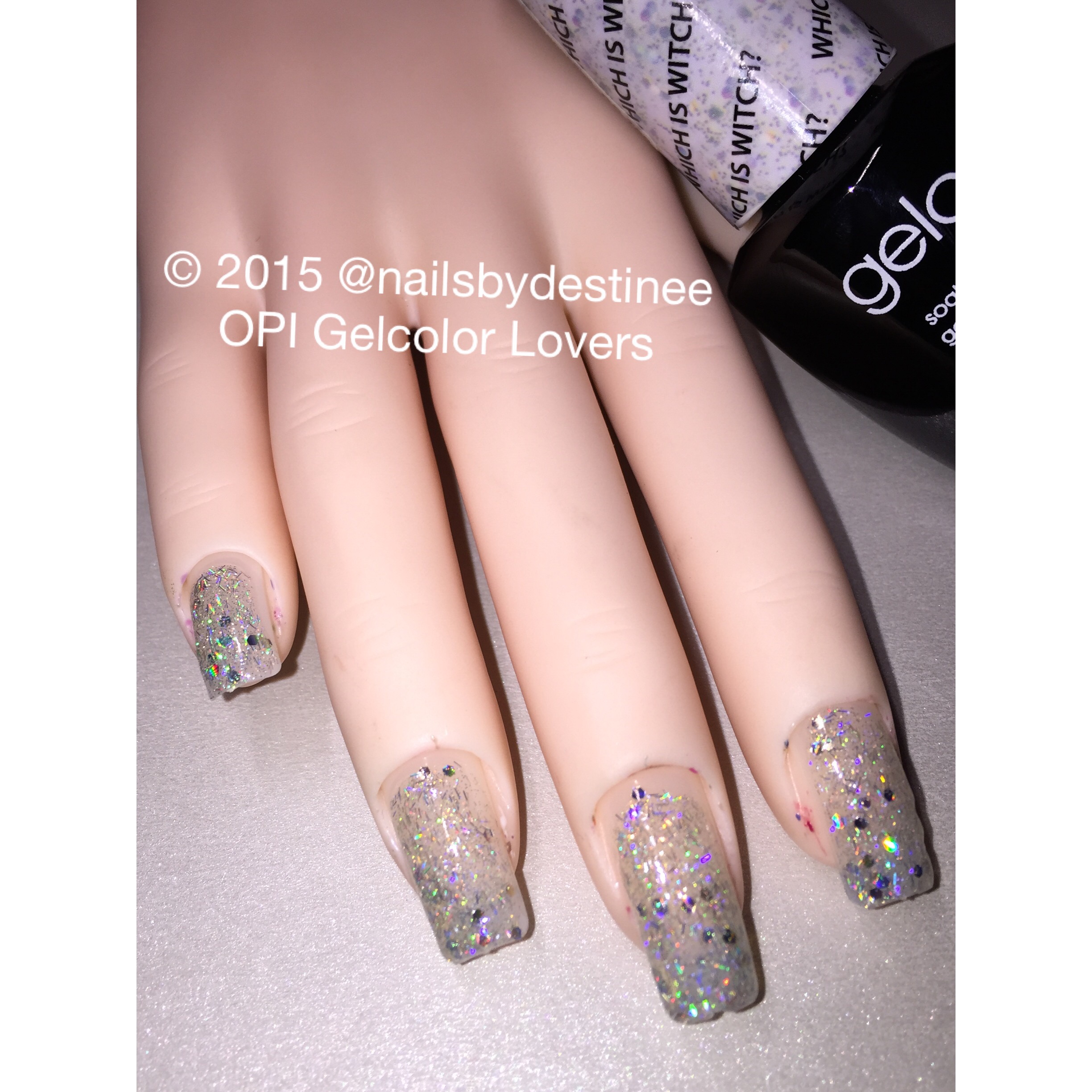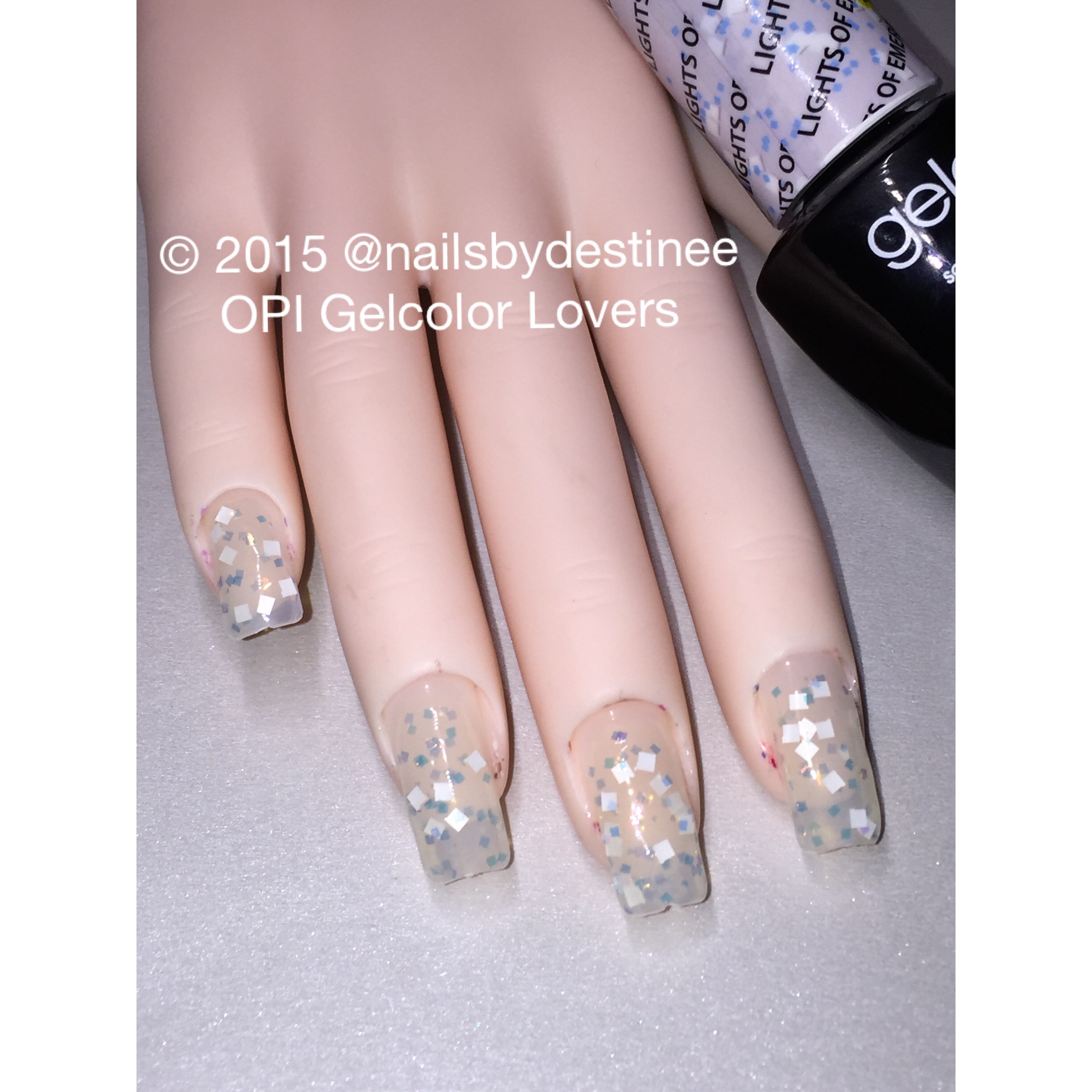 This Is a clear base with white square glitter and iridescent tiny square glitter.