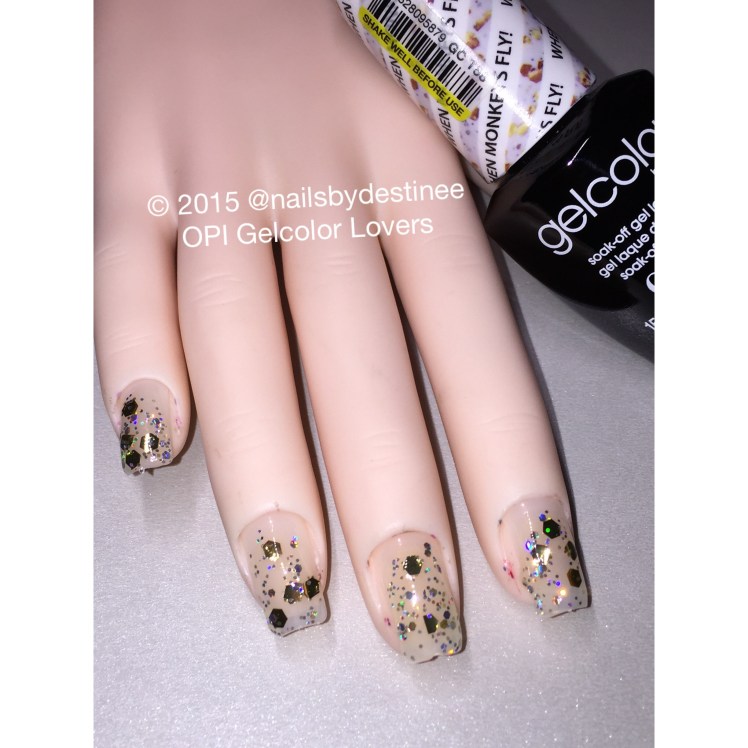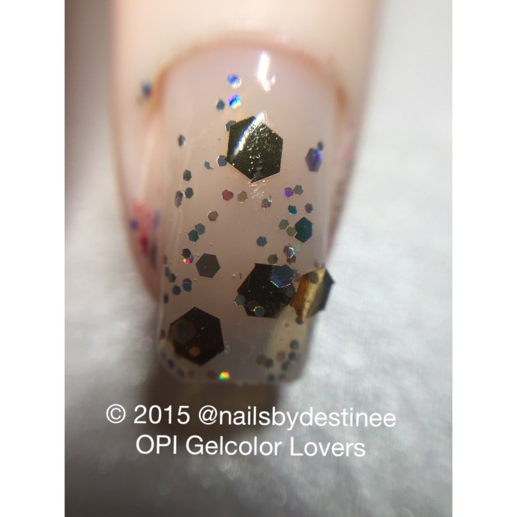 This is a clear base with large gold hexagon glitter with small holographic hexagons.