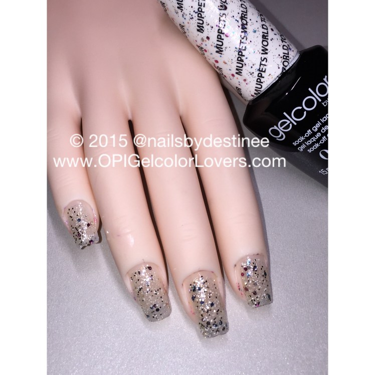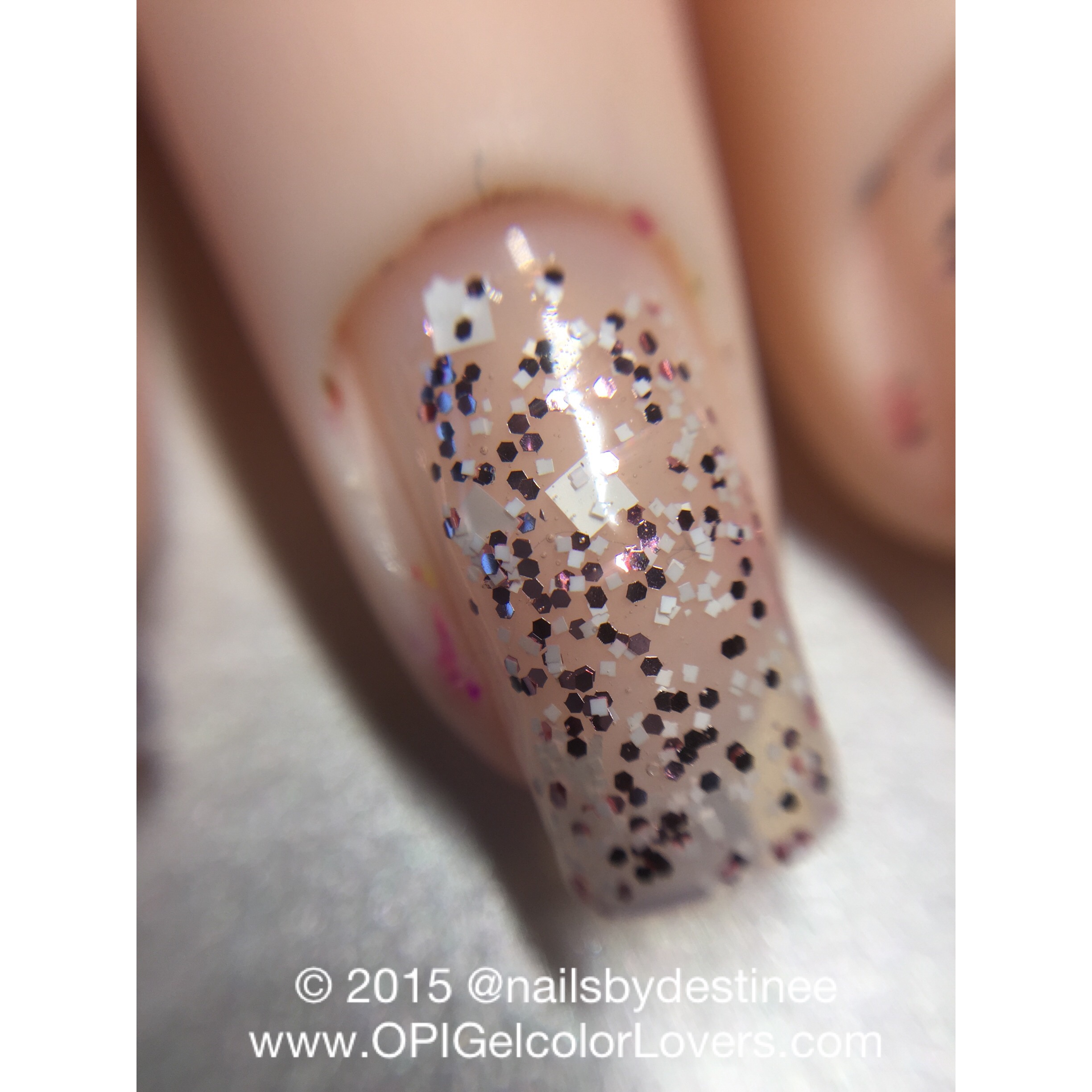 This is a clear base with white and pink small circle glitter, plus medium square glitter pieces.