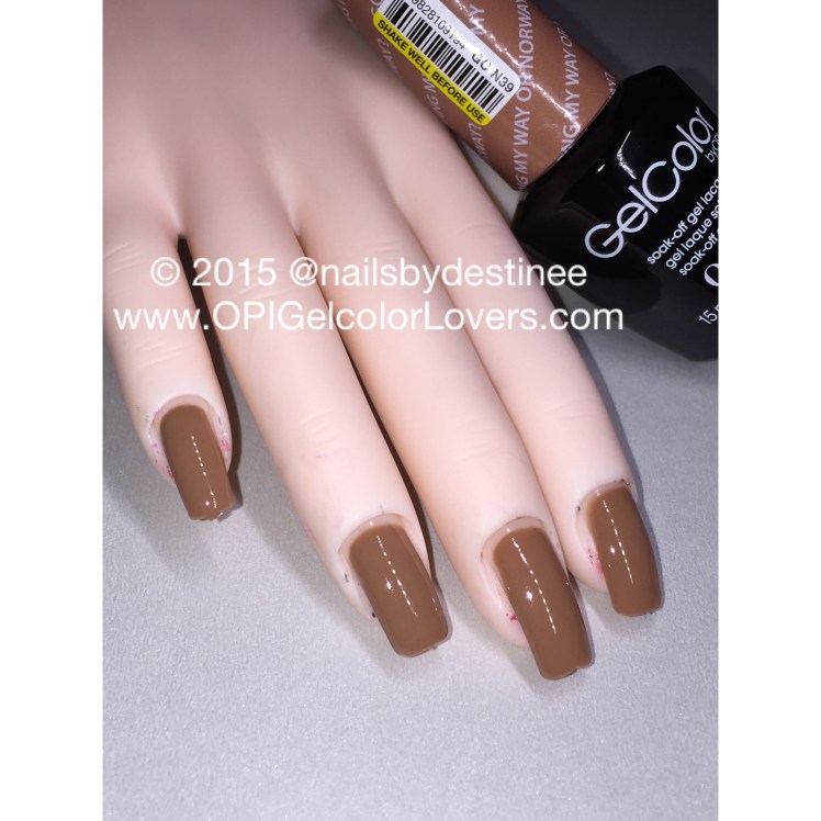 This is a brozney gold shimmer. Sometimes you cansee brush strokes but with the top coat they do seem to disappear.