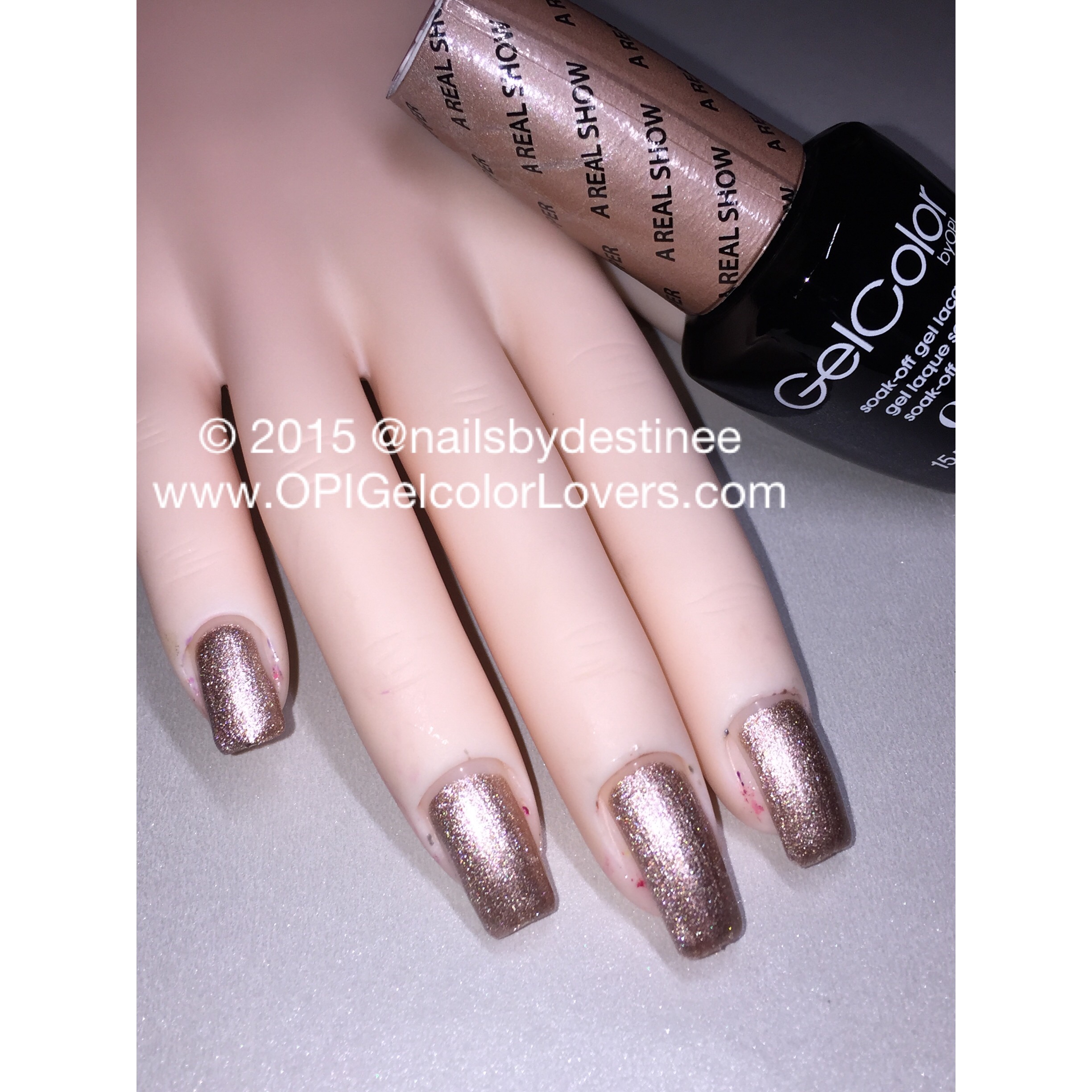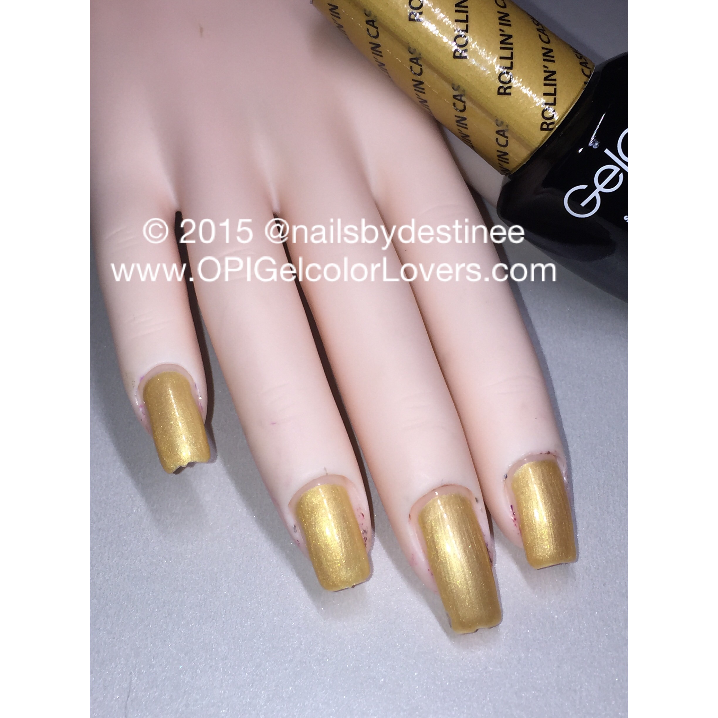 This is a metallic gold shimmer polish. Brush stroke can be noticable but the top coat gets rid of most of it.