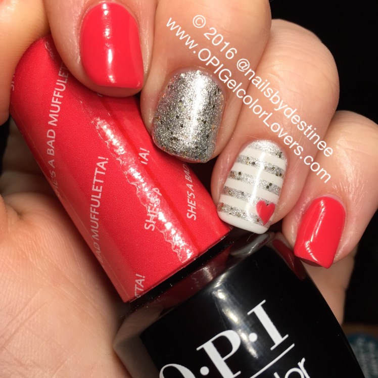 The thumb, index and pinky and the heart have from New Orleans Collection (whoo hoo) She’s A Bad Muffuletta! It does have 3 coats but I love this coral, red pink color it’s so great! Will definitely be a well used color!