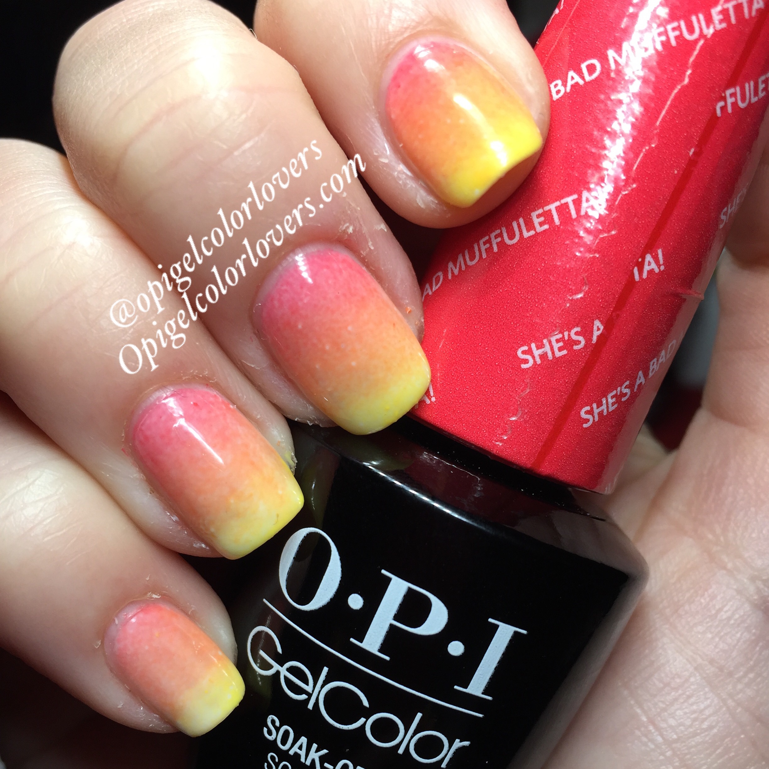 So today I have an amazing sunset Ombre for you!! It turned out perfectly I used: It’s In The Cloud (Undies – Soft Shades 2016), I onyl used one coat just to have something other than my nail as the base coat. It does go on pretty streaky so if you plan to use that alone go with 3 coats! For my ombre starting from the pink I used She’s A Bad Muffuletta, Can’t Afjord Not To! and I Just Can’t Copa-cabana.
