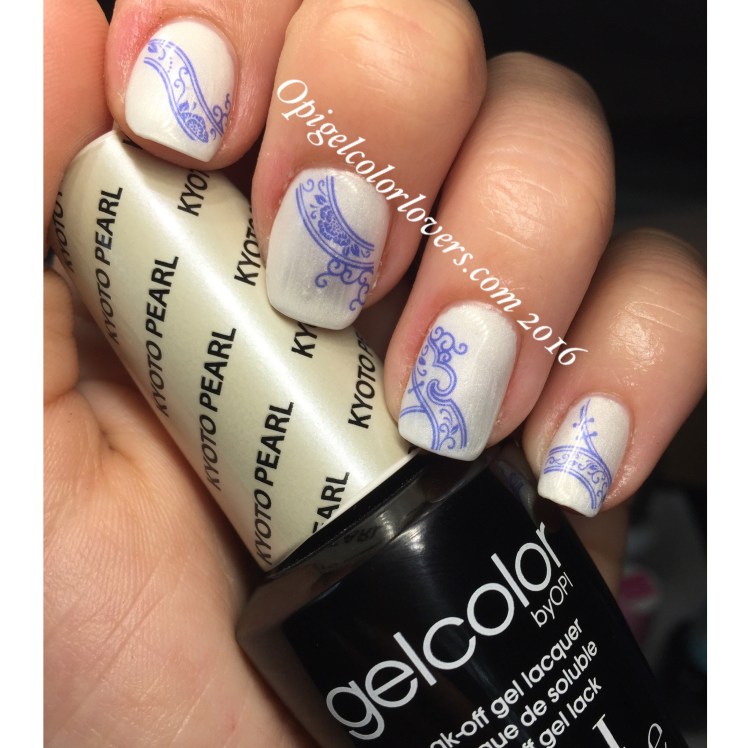 Anyways, I have this awesome manicure to show you today. I used Alpine Snow (Beautifuls) as a base then I used two coats of Kyoto Pearl (). I also used these awesome water decals. They are very easy to use… almost like temporary tattoos… Cut out what you want, remove the plastic cover layer, then put into a small bowl of water make sure to submerge it completely. then with a tweezers slowly slide off the sheet blow on the sheet to try to dry it slightly then apply to nail – position it as quickly as you can… if it dries out add more water. Then let it dry so i usually do both hands before going back to the first hand to apply TWO layers of top coats.