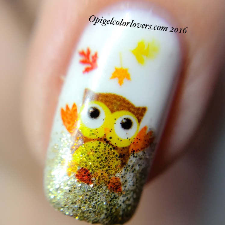 For Fall I have these super cute Owl water decals!! They are so cute!!! Anyways for colors I used Where Did Suzi’s Man-Go? (Brazil), It’s In The Cloud (Opaque Pastel) and All Gold and Sparkly (Mariah Carey Holiday).
