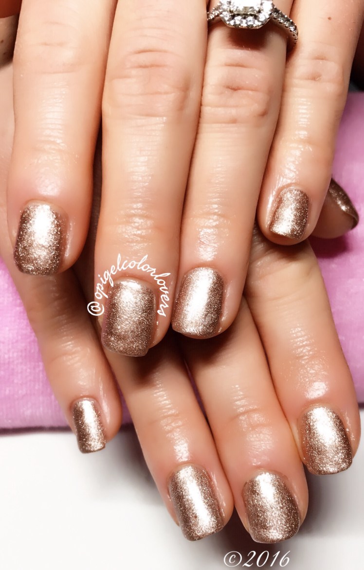 We have such a pretty color today it’s a copper- rose sparkly color. A Real Show Copper (Put a brush on it! Kit) i used 2 coats on these nails. This applies like butter!!! Seriously one of the best color in Gelcolor.