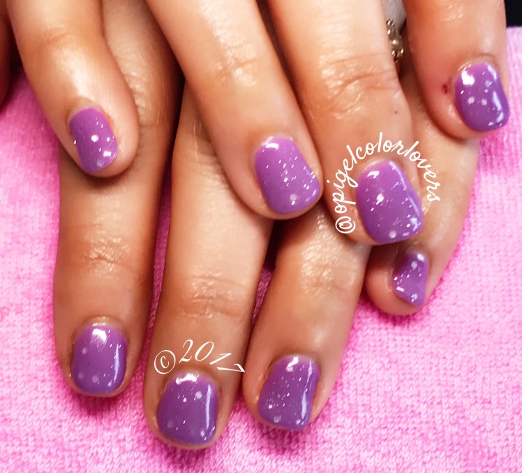 I have Do you Lilac It? (Showstoppers) which needed three coats to have the best coverage. It’s really a lilac color, Then we topped with with a very very thin coat of Pirouette My Whistle (Showgirls) – this is a clear base with tiny sliver glitter and small round irridescent white glitter. I think its a great manicure to try to welcome spring… and wish for warm weather.