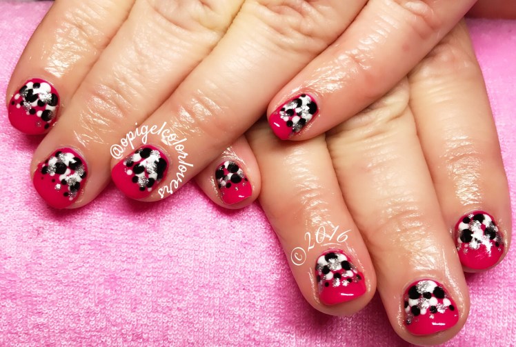 Here’s a fun manicure for you!! All these dots were made using dotting tools the color inclue: Can’t Have Too Mani Friends (Hello Kitty), Alpine Snow (Beautifuls), My Signature Is “DC” (Coke). The base color is Apartment For Two (Tiffany), another beautiful pink 2 coats too!!
