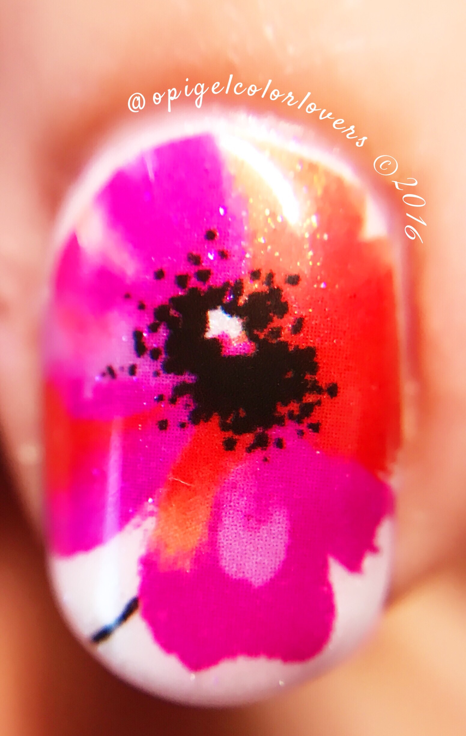 I used Apartment For Two (Tiffany) on my index and pinkey it only took two coats for full coverage (I seriously love this pink), for my middle and the white of the ring finger I used Chiffon My Mind (Soft Shades) and the black stripes are Can’t Have Too Mani Friends! (Hello Kitty). For the stripes I used nail vinyls per usual for me 🙂 The water decal flowers xan be tricky, you need to cut it to size then use a small bowl of water and put your decal in the water to sit (these works just like temporary tattoos), after you have your color on that nail cleanse off the tacky layer.. Then use a tweezers to pick up your decal from the water and slide onto your nail. next use a paper towl to press as much after out of that decal and nail as you can but be careful because you dont want to slide it off either… (told you tricky!)… then let that dry do the rest of your manicure and even your other hand where ever you have decals those should be the last nails you top coat. You’ll want to double top coat it (at least) and dont be surprised if that finger doesnt last as long… I also used and Matte top coat on the pink nails.