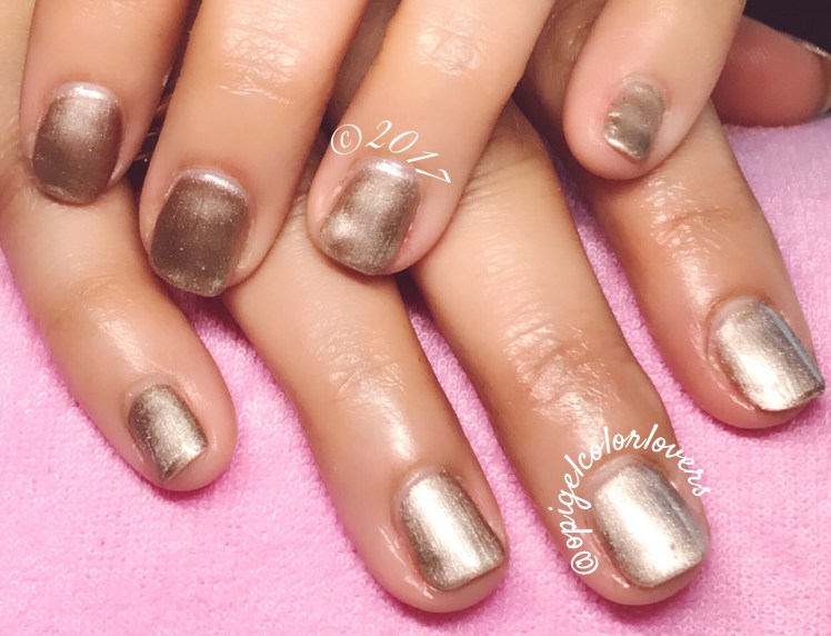 Heres an easy color Its Press * For Silver (Starlight), this is 3 coats and you need to be bareful because it can be alittle streaky sometimes too! There isnt much to say its a silver copper color frosty shimmer.