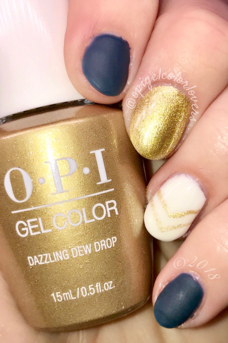 Nice simple manicure today using a Matte top coat from The Gel Bottle. Let’s get to the colors… Alpine Snow (Beautifuls) is on the ring finger again this a color that been used to death can search it for more images and information, CIA = Color Is Awesome (Washington) so this color without the matte is totally a teal color but matte it becomes a super dark teal, I used 2 coats to get this color & lastly Dazzling Dew Drop (Nutcracker), to me this is the perfect gold – it leans more to the yellow gold but it has the flecks of gold in the gold shimmer too.