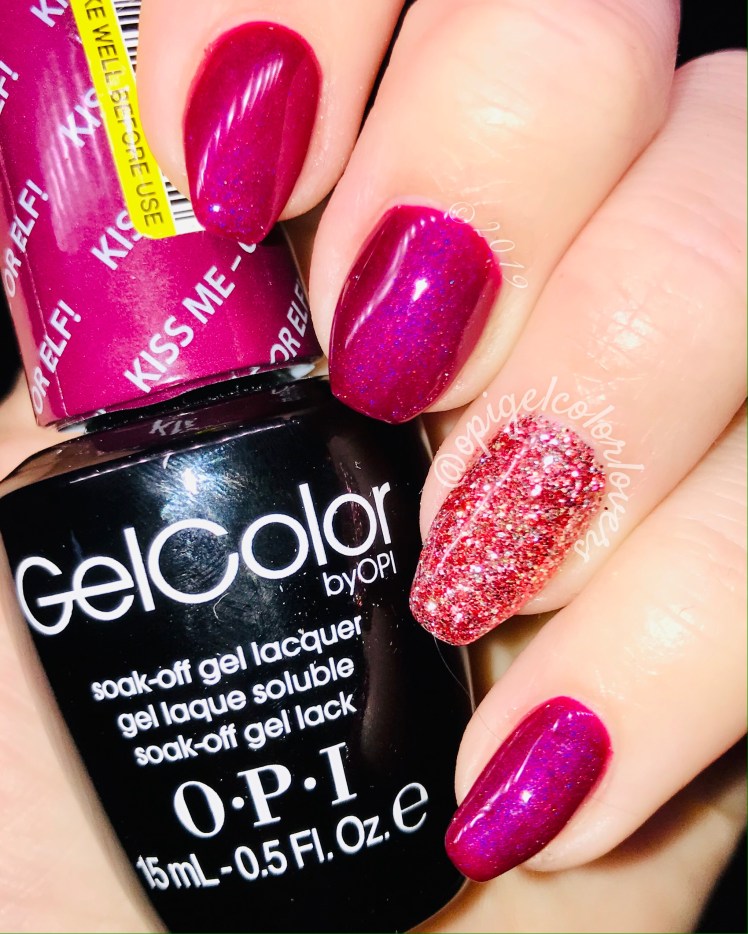 With the holidays I love this color Kiss Me or Elf! (Gwen Stefani Holiday). Its three coats of this electric pink purple color then just finished it with a mixture of loose glitter.