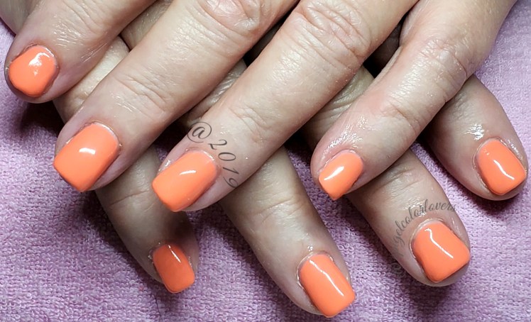 This beon orange everyone loves too!! Orange you a rock star (Neons 2019). I used three coats but it always goes on so great just love it.