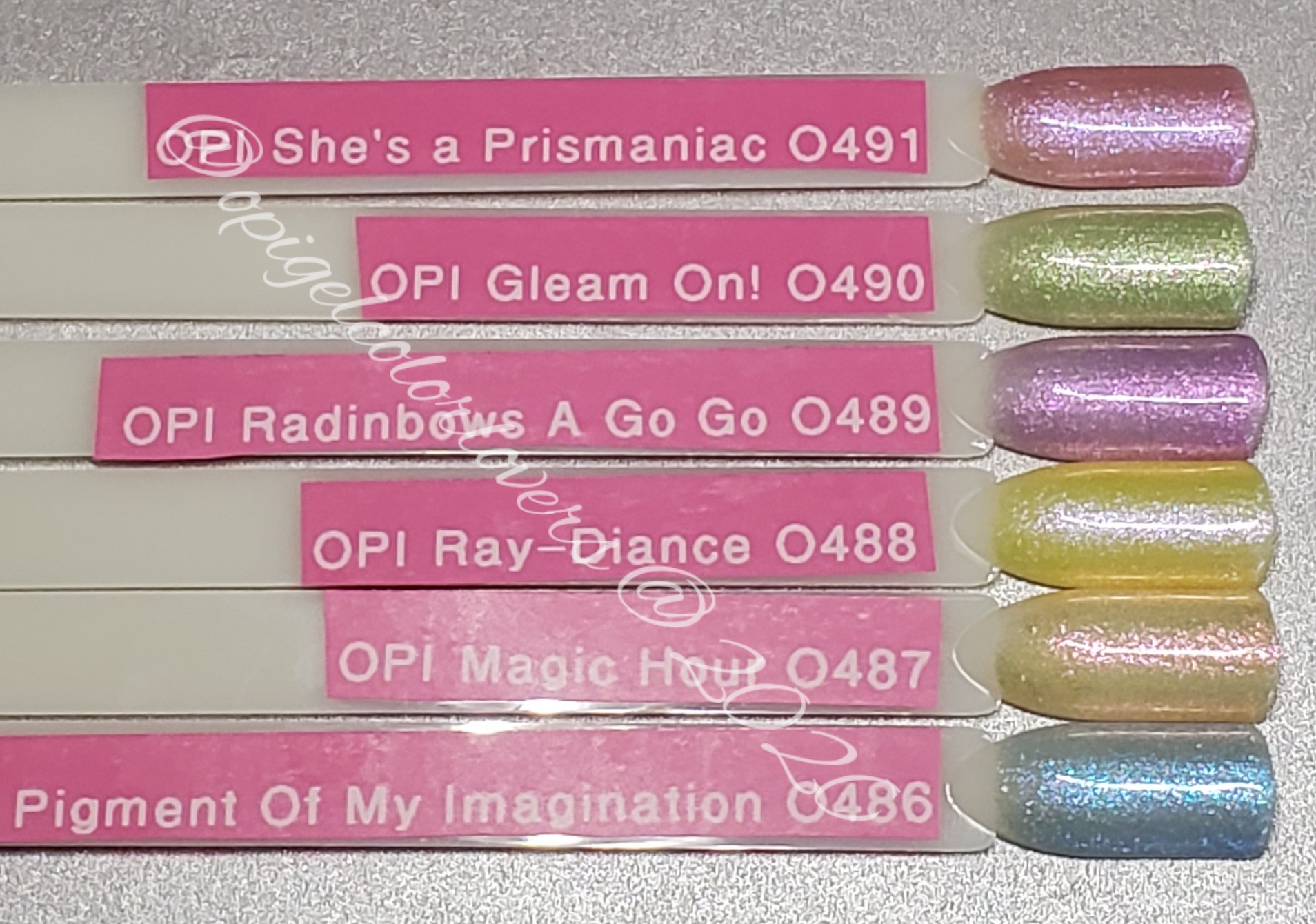 These colors while pretty and super sparkly are pretty sheer. I did try to make them more opaque. Each finger has a different amount of coats (see below), personally I think 4 or 5 coats look the best the others look sheer to me… These while no dupes in OPI remind me of some polishes Gelish had a few years ago.