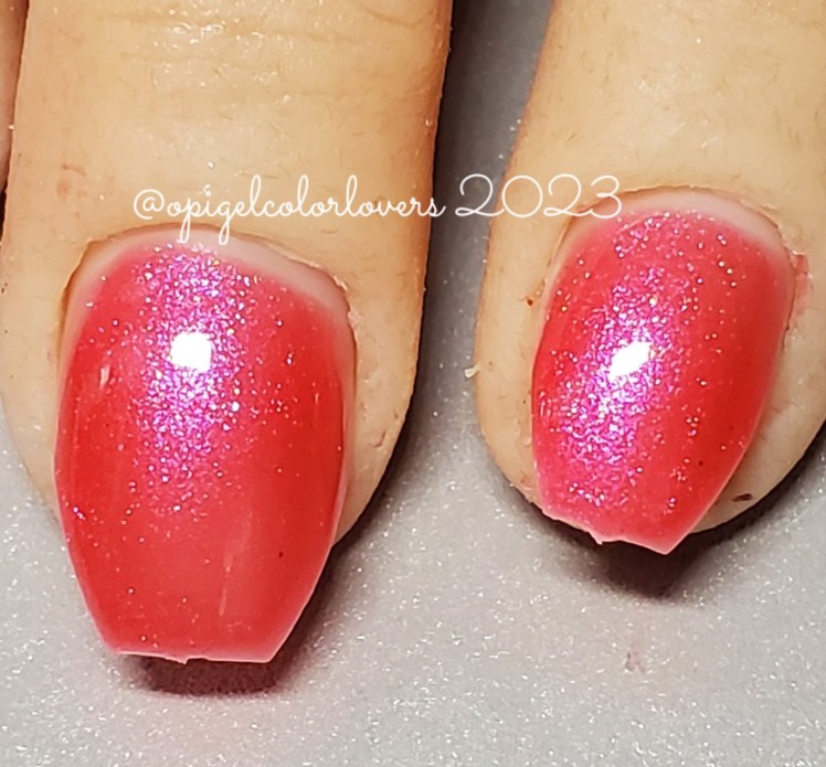 This is a really pretty sparkly pink, but it’s very sheer after 3 coats would still see a smile line. This one also looks super similar to an existing pink from recent collections