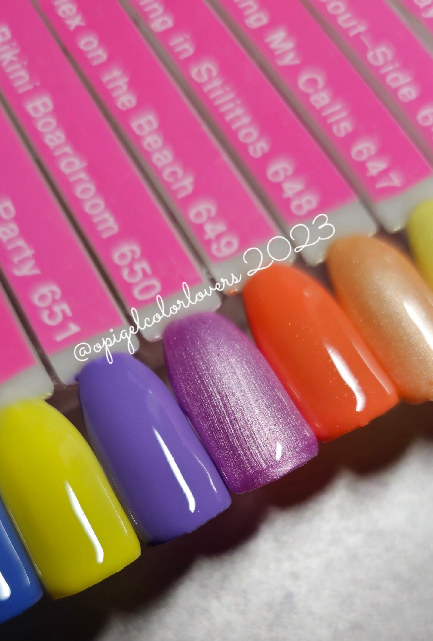 OMG these summer ones are so freakin’ pretty!! I really love these summer almost pastel neon’s. The pearl shimmer ones are beautiful too. I used 2 coats on all the swatches below – on a manicure id probably suggest 3 coats of all of these just to get a rich color.