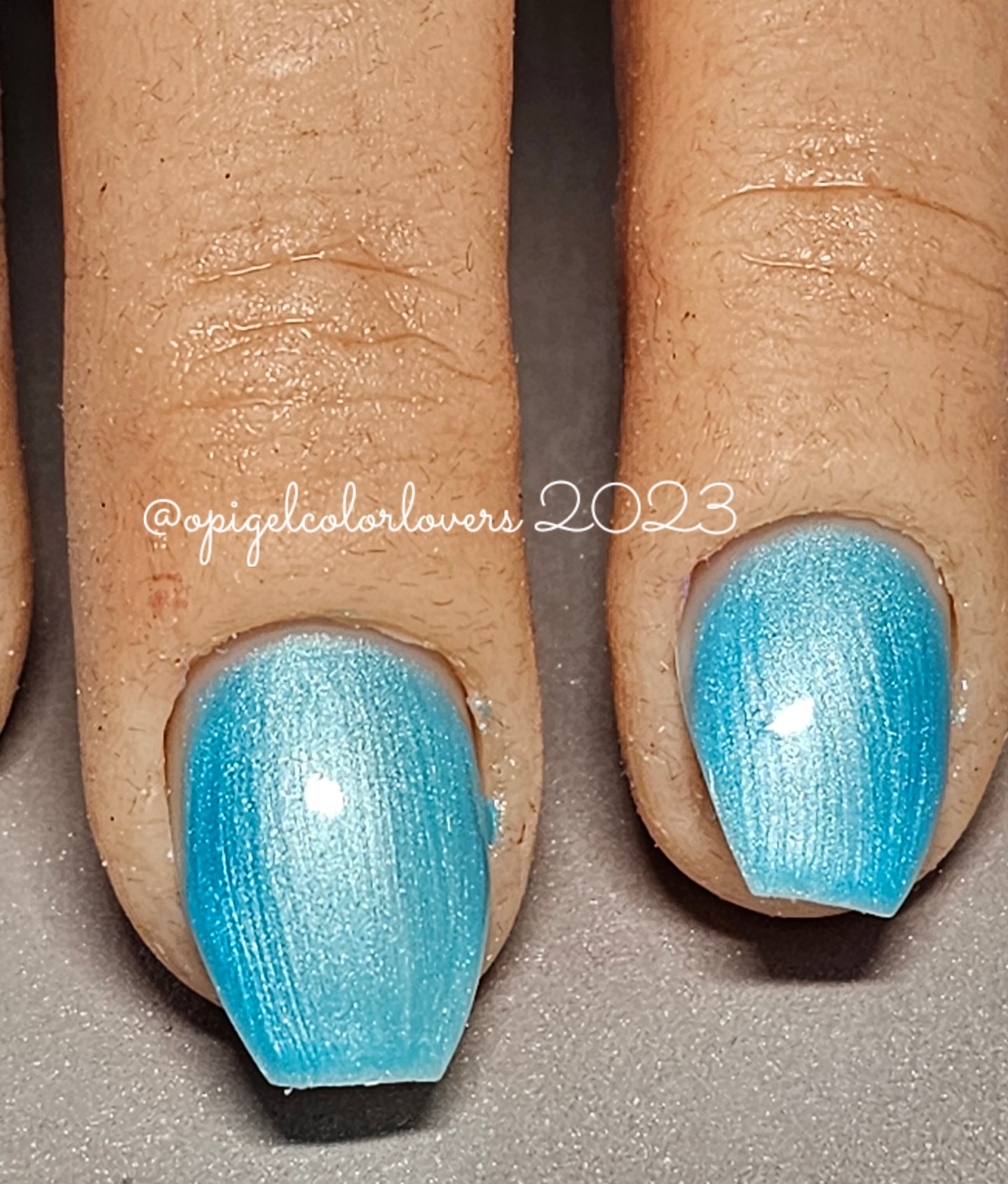 Hehehehe I love this name I don’t know who picked it but it made me giggle. This a sky blue pearl shimmer color – really love this color too. Again still need to be aware of the brush strokes.