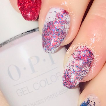 Hi Guys, Happy 4th of July!!!! I just wanted to do red white and blue with glitter so I did!! The white is Suzi Chases Portu-Geese (Lisbon). The rest is red and blue loose unnamed glitter. I just kept the clear base coat on the ring and pinky finger. I wish this would have photographed … More Happy 4th Of July!!!