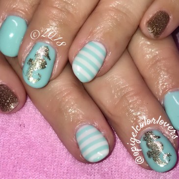 Hi Guys, Do you ever do a manicure and it just makes you want to go to the beach? Well, this one was it for me… this beachy blue and gold with some seahorses just makes me want to go the beach and relax… eventually right? So the lovely blue is Was It All Just … More Was It All Just A Dream, All Sparkly And Gold & Don’t Cry Over Spilled Milkshake